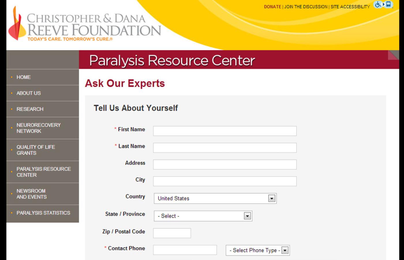 Since its founding in 1982, the Reeve Foundation has been dedicated to curing spinal cord injury by funding innovative research, and improving the quality of life for people living with paralysis through grants, information and advocacy. The Reeve Foundation's Paralysis Resource Center (PRC) promotes the health and well-being of people living with a spinal cord injury, mobility impairment, and paralysis by providing comprehensive information, resources and referral services.