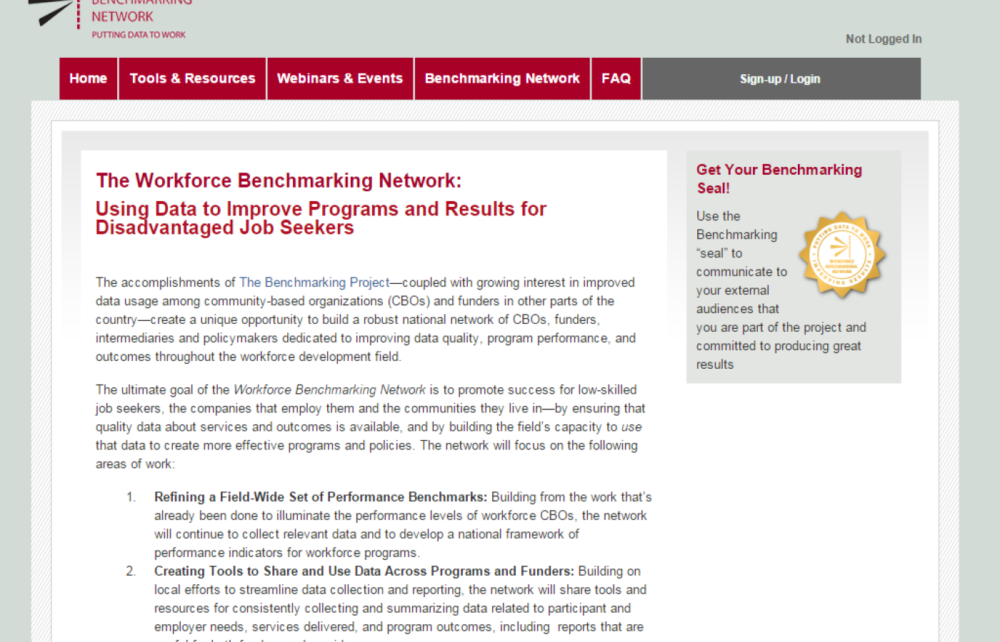The ultimate goal of the Workforce Benchmarking Network is to promote success for low-skilled job seekers, the companies that employ them and the communities they live in—by ensuring that quality data about services and outcomes is available, and by building the field’s capacity to use that data to create more effective programs and policies.